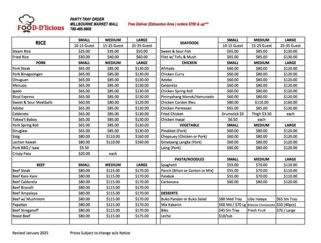 Food D'licious is a hidden gem tucked away in the heart of Millbourne Market Mall in Edmonton, T6K. This cozy eatery offers a variety of Filipino dishes that will surely tantalize your taste buds. From all-day breakfast options like Tapsilog and BBQsilog to grilled and fried favorites such as Fried Tilapia and Daing Bangus, there is something for everyone to enjoy.
